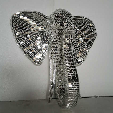 Spazi interni personalizzati di lusso per la casa e la decorazione murale a specchio mosaico di elefante testa parete scultura