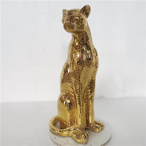 Mosaico d'oro personalizzato statua di leopardo scultura in resina per la casa di lusso Hotel decorazione ufficio elegante pezzo di arte animale mosaico scultura